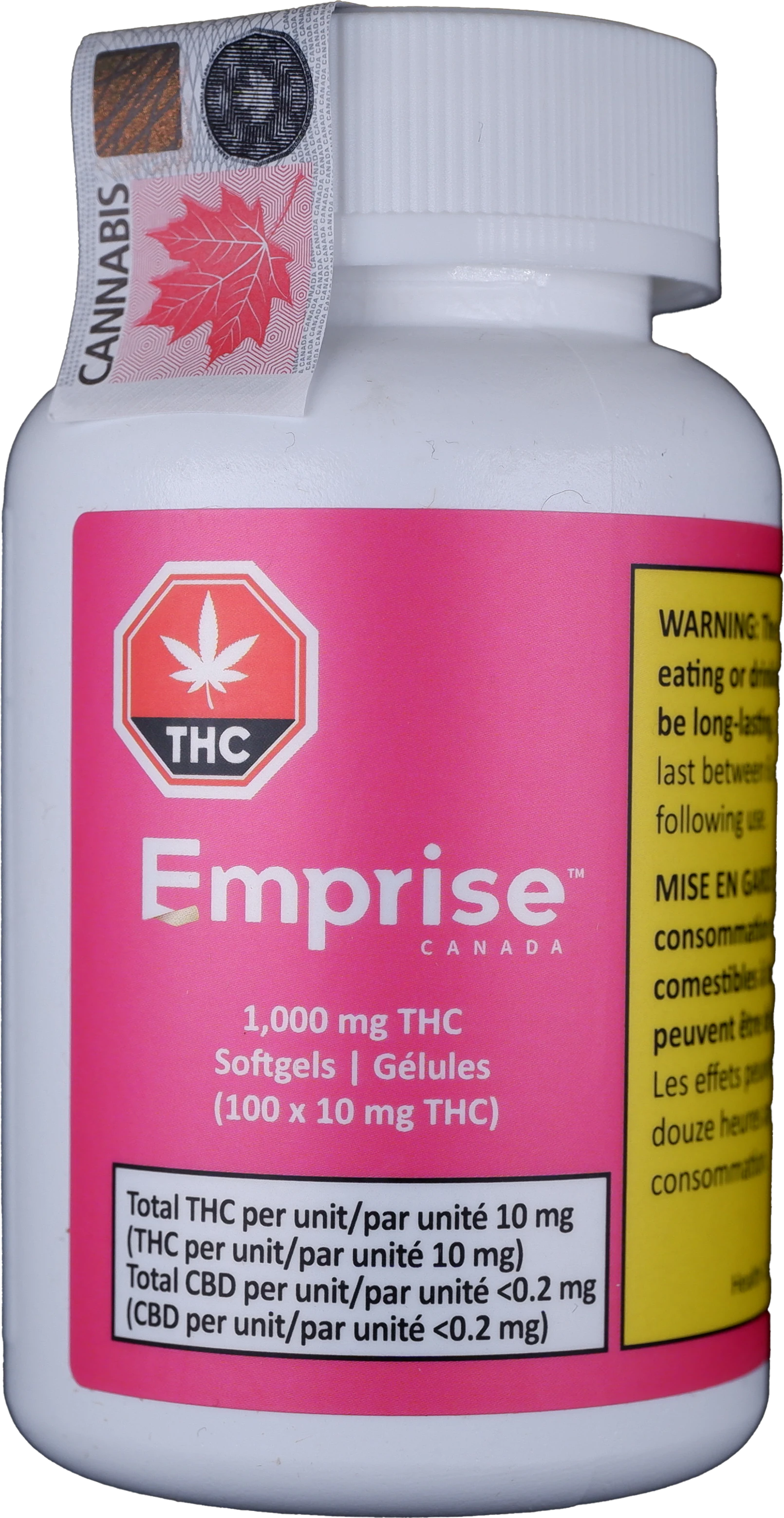 Emprise’s 1,000 mg THC Softgels (100 x 10 mg THC) contains 100 softgels. Offering Consumers the Maximum Potency of 1000 mg THC available in Canada. Each softgel has 10 mg THC. The product is formulated with Full Spectrum THC Cannabis Extract and hemp seed carrier oil which supports the Entourage effect. Making this product the first true-to-plant softgel on the market - After all if it grows together, it goes together.